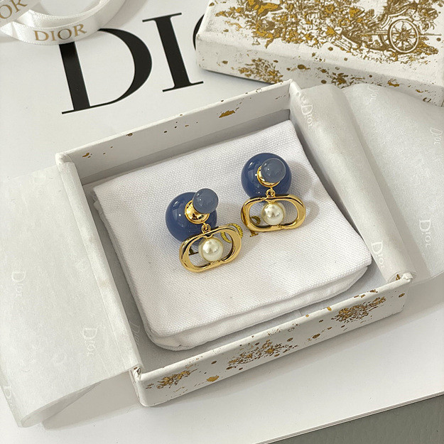 디올 유리 진주 귀걸이