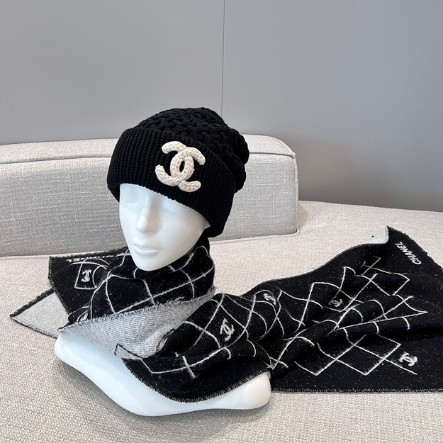 • 샤넬 화이트&블랙 캐시미어 머플러