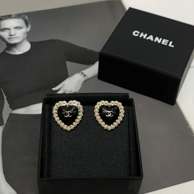샤넬 블랙 에나멜 하트 귀걸이